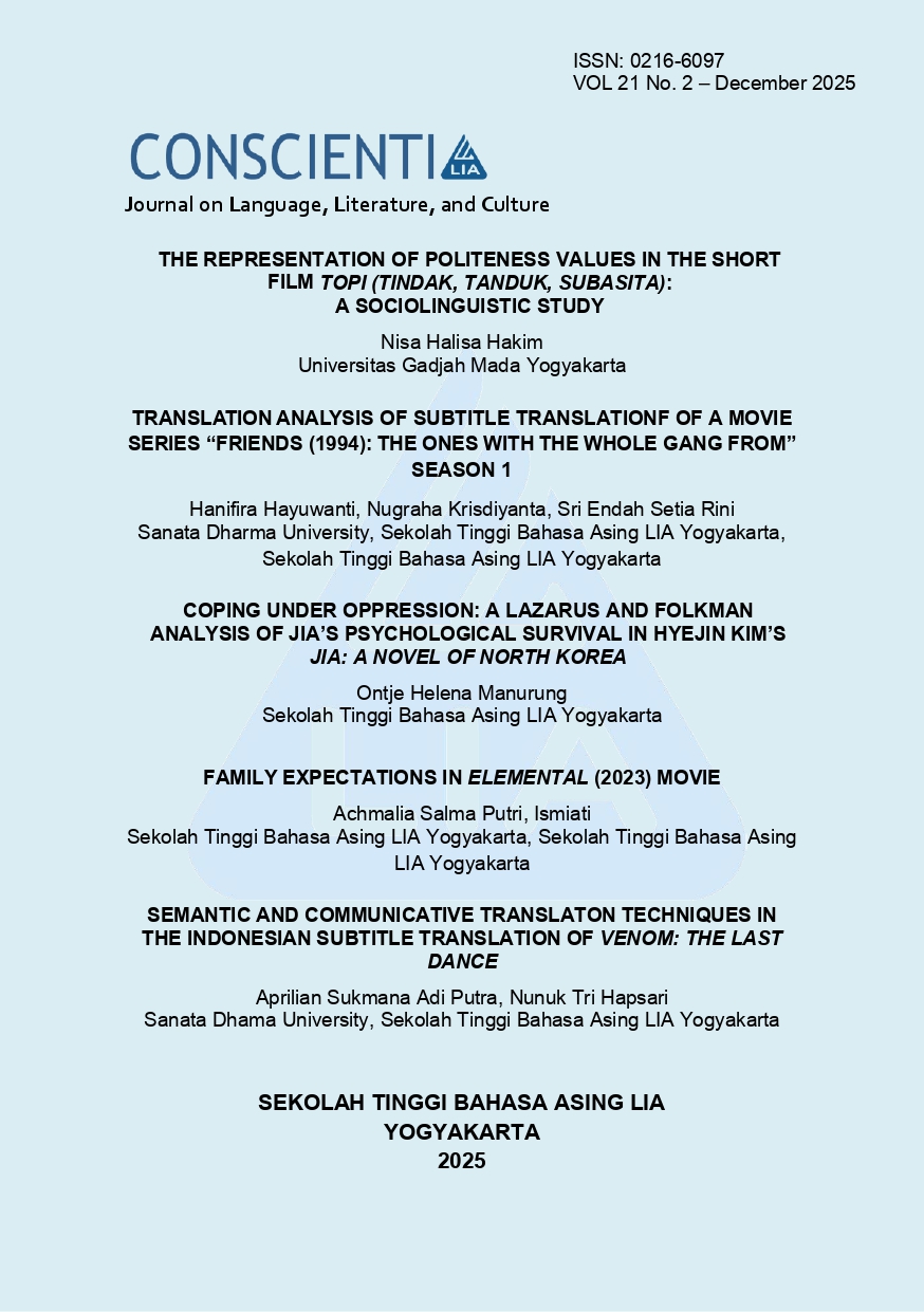 This research examines the quality of Indonesian subtitles in the television series Friends (1994), focusing on the episode “The Ones with the Whole Gang” from Season 1. Using a qualitative descriptive approach with content analysis, the research analyzes ten selected subtitle excerpts to identify translation problems and evaluate applied strategies. The analysis is based on Dynamic Equivalence Theory (Nida, 1964), Skopos Theory (Vermeer, 1989), and the functionalist approach to audiovisual translation.
